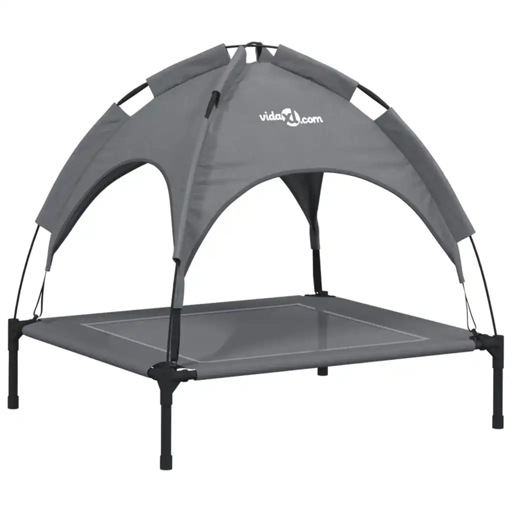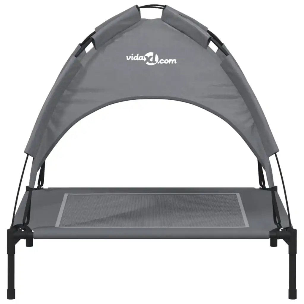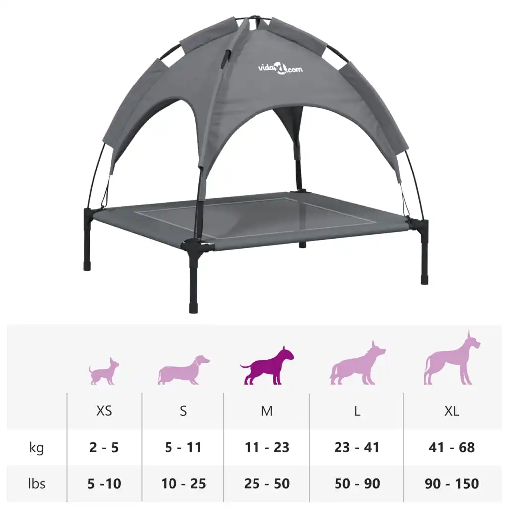 Dieses Hundebett mit Dach vereint Komfort und Funktionalität für Ihren Hund. Hergestellt aus robustem, atmungsaktivem Oxford-Stoff und Textilene, eignet es sich bestens für den täglichen Einsatz im Freien. Das pulverbeschichtete Stahlgestell garantiert Stabilität und Langlebigkeit, unterstützt durch vier rutschfeste Gummifüße für zusätzlichen Stand. Die abnehmbare Überdachung schützt vor Sonne und sorgt für Schatten. Durch die erhöhte Bauweise bleibt der Liegeplatz sauber und trocken. Vielseitig einsetzbar, ideal für drinnen sowie draußen auf Terrasse, Balkon oder im Garten. Maße: 71 x 64 x 70 cm, Tragkraft bis 36 kg.